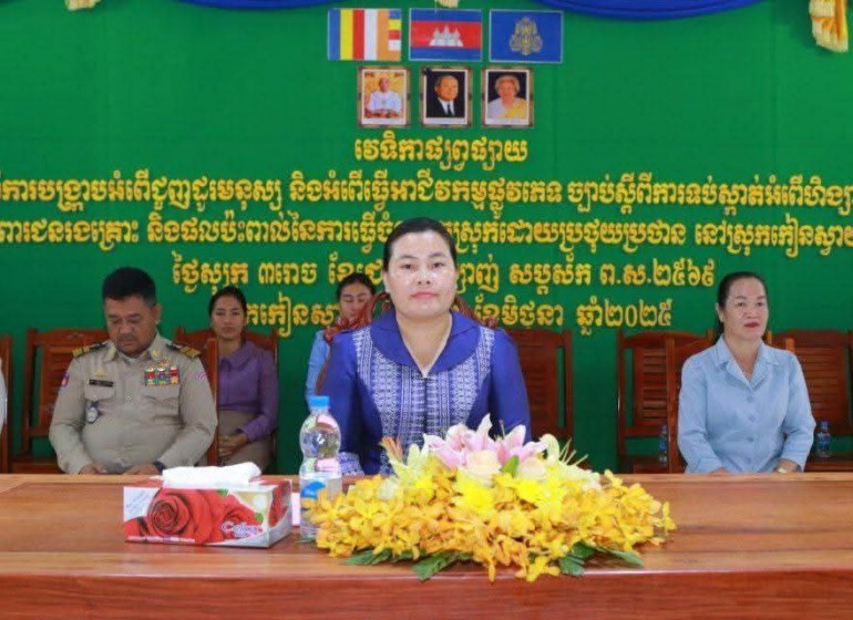 ខេត្តកណ្តាល៖ ព្រឹកថ្ងៃទី១៣ ខែមិថុនា ឆ្នាំ២០២៥ រដ្ឋបាលខេត្តកណ្តាលបានរៀបចំវេទិកាផ្សព្វផ្សាយច្បាប់ស្តីពីការបង្ក្រាបអំពើជួញដូរមនុស្ស និងអំពើធ្វើអាជីវកម្មផ្លូវភេទ ច្បាប់ស្តីពីការទប់ស្កាត់អំពើហិង្សាក្នុងគ្រួសារ និងកិច្ចការពារជនរងគ្រោះ និងផលប៉ះពាល់នៃការធ្វើចំណាកស្រុកដោយប្រថុយប្រថាន ក្រោមអធិបតីភាពលោកជំទាវ ស្រ៊ុន ស្រីនាង អភិបាលរង នៃគណៈអភិបាលខេត្កណ្តាល និងជាអនុប្រធានអចិន្ត្រៃយ៍ គ.ខ.ប.ជ តំណាងឯកឧត្តម គួច ចំរើន អភិបាល នៃគណៈអភិបាលខេត្តកណ្តាល និងប្រធាន គ.ខ.ជ.ប ខេត្តកណ្តាល ដោយបានការអញ្ជើញចូលរួមពីនាយប៉ុស្តិ៍រដ្ឋបាលឃុំ មេឃុំ មេភូមិ សិស្សានុសិស្ស សមាជិកសមាគមនារីដើម្បីអភិវឌ្ឍន៍ ប្រជាពលរដ្ឋ និងអាជីកម្មផ្ទះសំណាក់ ខារ៉ាអូខេ ម៉ាស្សា កោលជប់ សរុប ២៥០នាក់ នៅសាលប្រជុំសាលាស្រុកកៀនស្វាយ។