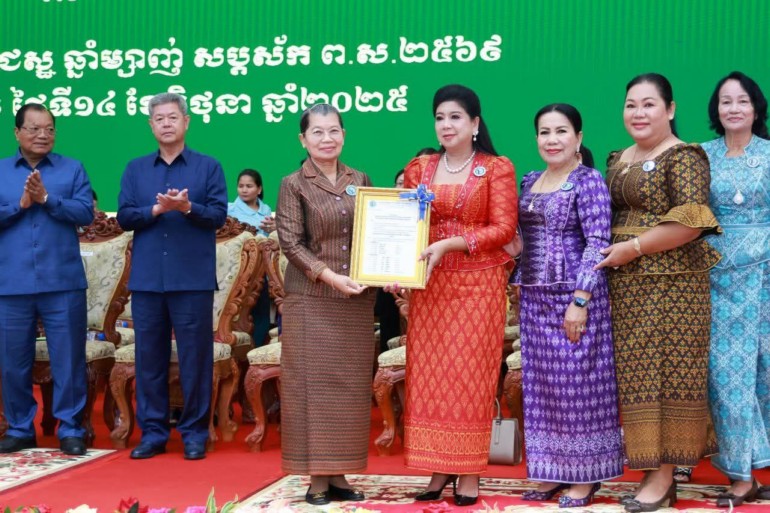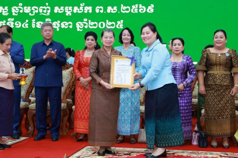 ខេត្តកណ្តាល៖ ព្រឹកថ្ងៃទី១៤ ខែមិថុនា ឆ្នាំ២០២៥ សម្តេចកិត្តិសង្គហបណ្ឌិត ម៉ែន សំអន ឧត្តមប្រឹក្សាផ្ទាល់ព្រះមហាក្សត្រ និងជាប្រធានសមាគមនារីកម្ពុជាដើម្បីសន្តិភាព និងអភិវឌ្ឍន៍ អញ្ជើញជាអធិបតីភាពដ៏ខ្ពង់ខ្ពស់ ក្នុងពិធីប្រកាសទទួលស្គាល់សមាសភាព របស់គណៈកម្មការសាខាសមាគមនារី កម្ពុជាដើម្បីសន្តិភាព និងអភិវឌ្ឍន៍ខេត្តកណ្តាល។