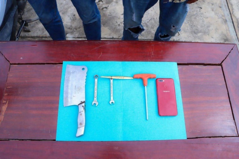 ដោយដកហូតវត្ថុតាងបានរួមមាន៖ ទូរស័ព្ទចំនួន០១គ្រឿង,ម៉ូតូចំនួន០១គ្រឿង ម៉ាកBEAT (ពណ៌សគ្មានផ្លាកលេខ),សោររាងអក្សរ(T)ចំនួន០១,សោរតភ្ជាប់ជាមួយដងស្លាបព្រាចំនួន០១,កាំបិតប័ង្គតោចំនួន០១ និងសំបកកញ្ជប់គ្រឿងញៀនដែលប្រើប្រាស់រួច០១កញ្ជប់តូច។