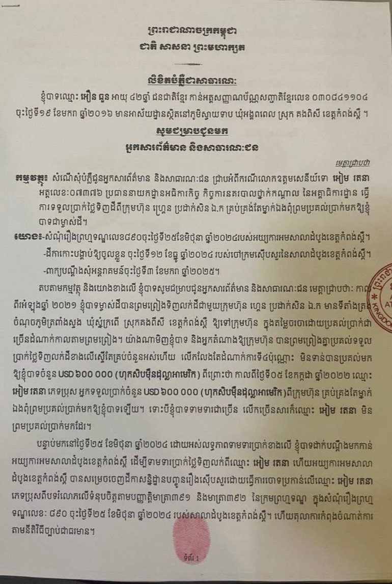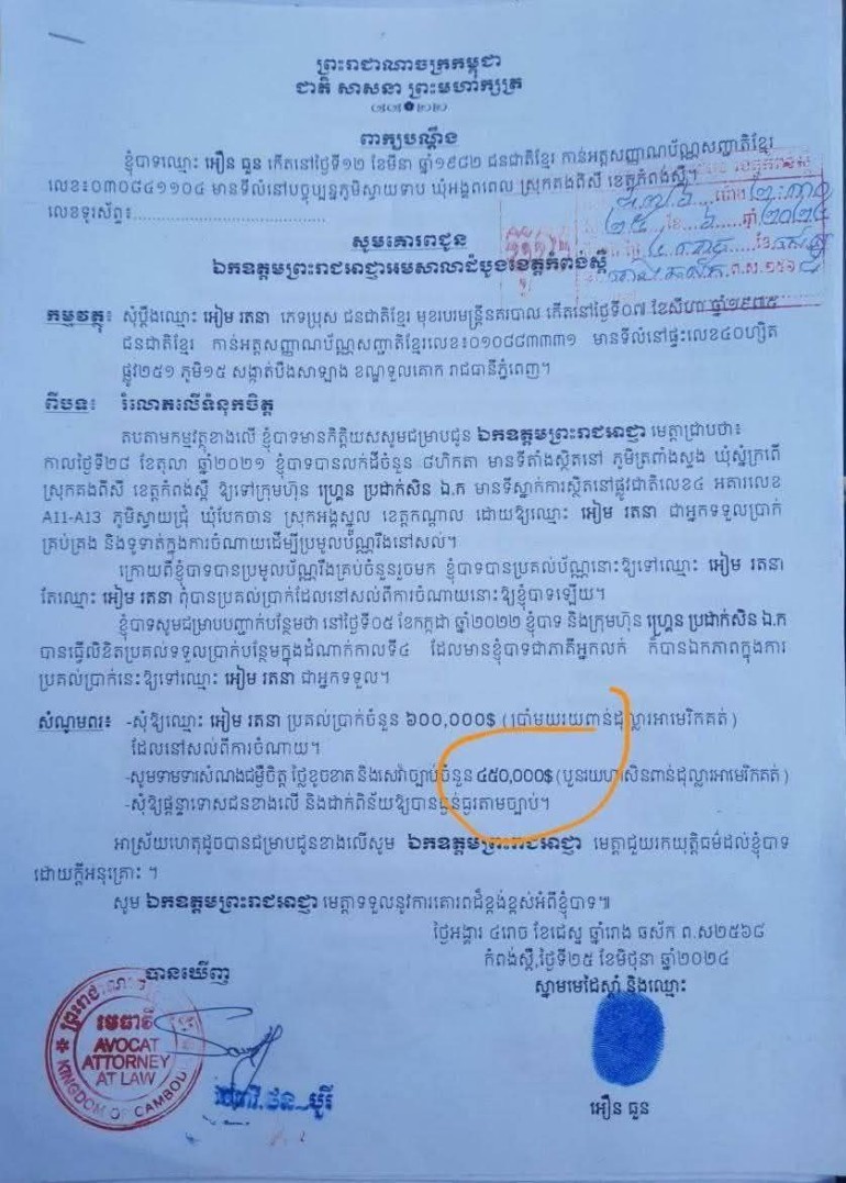 ក្រោមរូបភាព ទទួលលុយពីក្រុមហ៊ុន អ្នកទិញដីខាងលើ ហើយមិនព្រមប្រគល់លុយនោះ ឱ្យមកជនរងគ្រោះជាអ្នកលក់ដី.!!។