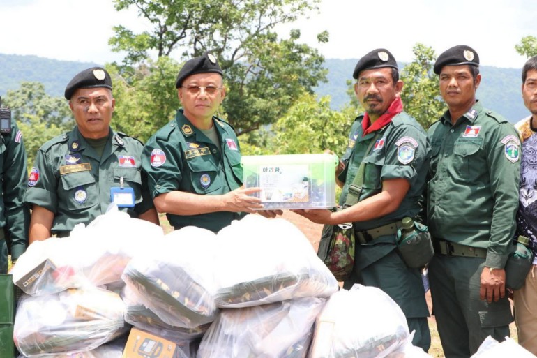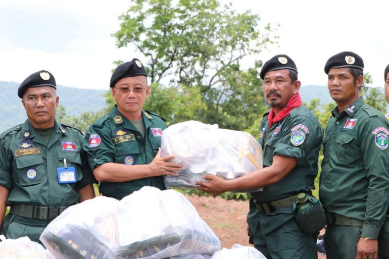 ដោយអនុវត្តតាមការដឹកនាំបទបញ្ជាដ៏ខ្ពង់ខ្ពស់ របស់ ឯកឧត្តម នាយឧត្តមសេនីយ៍ ស ថេត អគ្គស្នងការនគរបាលជាតិ និងក្រោមការចង្អុលបង្ហាញដឹកនាំបញ្ជាដោយផ្ទាល់ពី ឯកឧត្តមគណៈបញ្ជាការឯកភាពខេត្ត លោក ឧត្តមសេនីយ៍ទោ ឡោ សុខា ស្នងការនគរបាលខេត្តមណ្ឌលគិរី ដឹកនាំលោក លោកស្រីស្នងការរងប្រធានផែន និងប្រតិភូអមដំណើរ បាននាំយកនូវថវិកា និងសម្ភារៈប្រើប្រាស់មួយចំនួន ចុះសួរសុខទុក្ខកម្លាំងនគរបាលខេត្តមណ្ឌលគិរី ដែលកំពុងឈរជើងការពារព្រំដែន នៅសមរភូមិជួរមុខនៅប្រាសាទព្រះវិហារ នៅព្រឹកថ្ងៃសៅរ៍ ទី២ ខែសីហា ឆ្នាំ២០២៥នេះ ឯកឧត្តម អភិបាលខេត្តមណ្ឌលគិរី លោកបានឧបត្ថម្ភ នៅក្នុងកញ្ចប់ឃីបមួយចំនួននិងមានសម្ភារៈប្រើប្រាស់មួយចំនួនធំរួមមាន៖ , អង្រឹងមុង , អាវភ្លៀង , មី , ត្រីខ កំប៉ុង , ប៊ីចេង ,ស្ករ , អំបិល , និងថវិកា ៨០០,០០០៛ (ប៉ែតសិបម៉ឺងរៀល)ក្នុង ១នាក់។