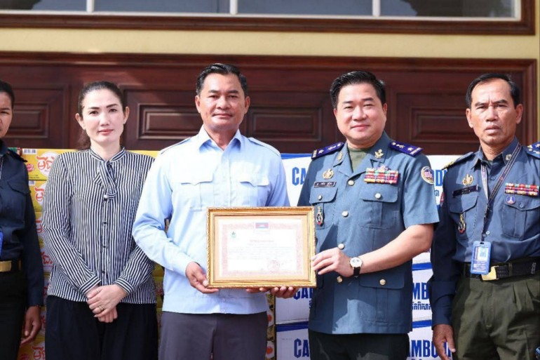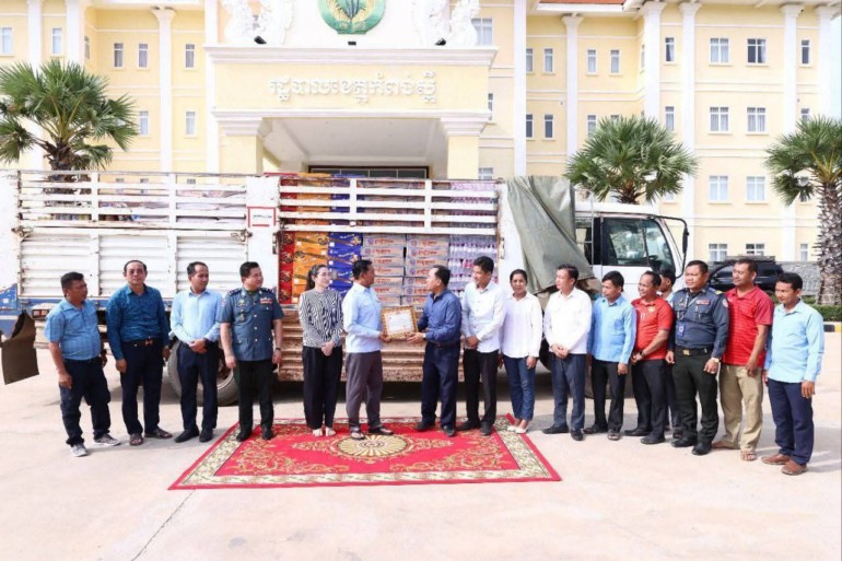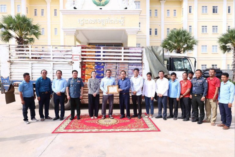 ខេត្តកំពង់ស្ពឺ÷នៅព្រឹកថ្ងៃទី០៣ ខែសីហា ឆ្នាំ ២០២៥នេះ ឯកឧត្តមបណ្ឌិត ជាម ច័ន្ទសោភ័ណ អភិបាលនៃគណៈអភិបាលខេត្តកំពង់ស្ពឺ ទទួលនៅសម្ភារៈគ្រឿងឧបភោគ បរិភោគ និងថវិកាពីសប្បុរសជនតាមរយៈកងរាជអាវុធហត្ថខេត្ត និងថ្នាក់ដឹកនាំ មន្ត្រីកងរាជអាវុហត្ថទូទាំងខេត្តកំពង់ស្ពឺ រួមនឹងរដ្ឋបាលស្រុកគងពិសី។