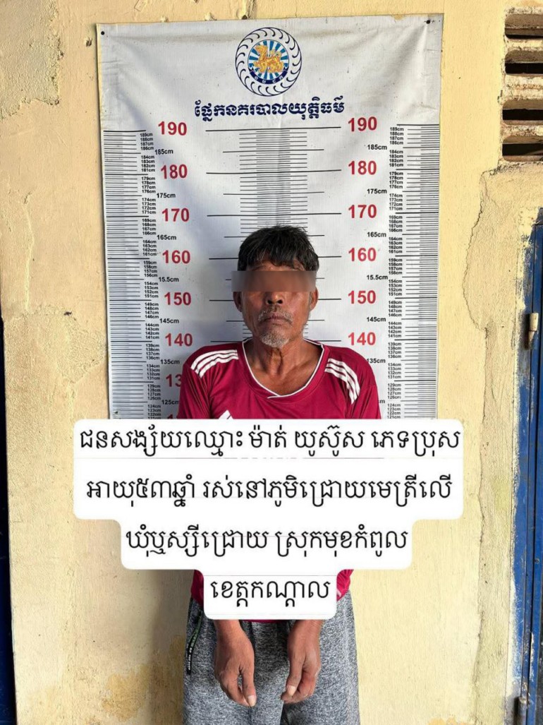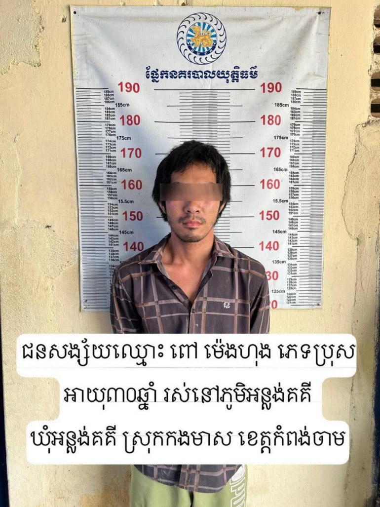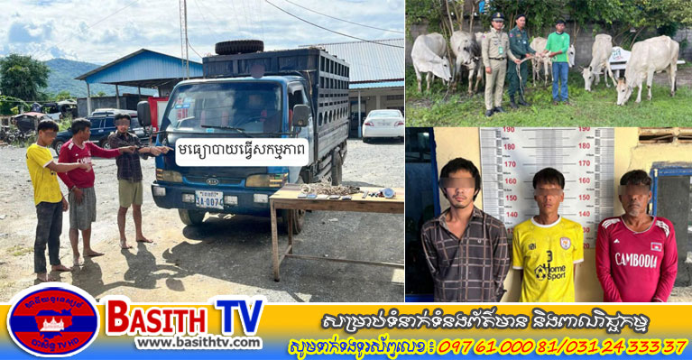 កម្លាំងនគរបាលបានឃាត់រថយន្ដមួយគ្រឿងលើផ្លូវជាតិលេខ៤១ ចន្លោះគីឡូម៉ែត្រលេខ១៦.១៧ ភូមិព្នៅ ឃុំព្រៃញាតិ ស្រុកគងពិសី រថយន្តកូរ៉េពណ៌ខៀវមានបាំងទ្រុងជិត ស្លាកលេខរតនគីរី3A.0074 បើកពីត្បូងទៅទិសខាងជើង ធ្វេីការត្រួតពិនិត្យឃើញមានដឹកគោ៦ក្បាល (ញី៥ក្បាលឈ្មោល១ក្បាលសម្បុលសរ៥ធ្លក១) ឃាត់ខ្លួនជនសង្ស័យចំនួន៣នាក់មកសាកសួរ១/ ឈ្មោះ ពៅ ម៉េងហុង ភេទប្រុស អាយុ៣០ឆ្នាំ លំនៅភូមិអន្លង់គគីត ឃុំអន្លង់គគីរ ស្រុកកងមាស ខេត្តកំពង់ចាម ២./ឈ្មោះ យូសូ ម៉ូសស្លីម ភេទប្រុស អាយុ៣០ឆ្នាំ រស់នៅ ភូមិឫស្សីជ្រោយ ឃុំឫស្សីជ្រោយ ស្រុកមុខកំពូល ខេត្តកណ្ដាល ៣/.ឈ្មោះ ម៉ាត់ យូស៊ូស ភេទប្រុស អាយុ៥៣ឆ្នាំ លំនៅភូមិជ្រោយមេត្រីលើ ឃុំឬស្សីជ្រោយ ស្រុកមុខកំពូល ខេត្តកណ្ដាល ។