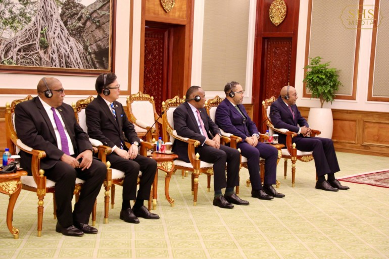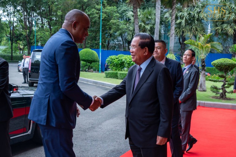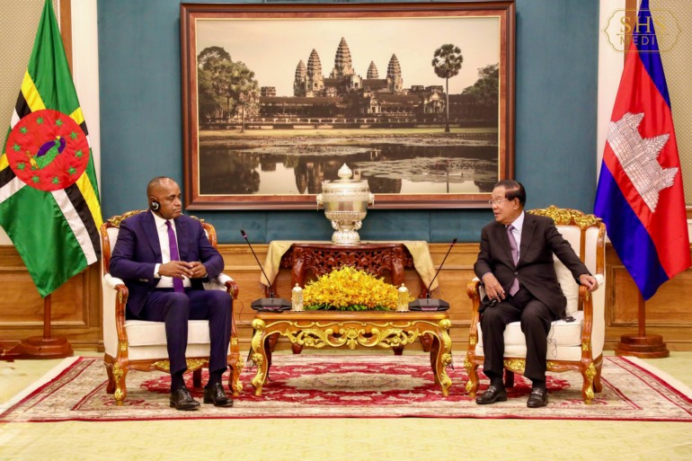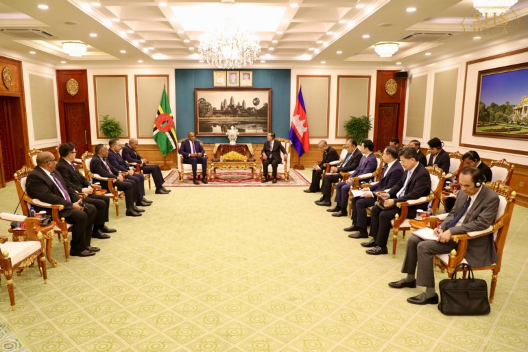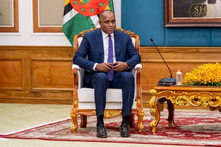 នៅវិមានព្រឹទ្ធសភា នាព្រឹកថ្ងៃសុក្រ ៣រោច ខែអស្សុជ ឆ្នាំម្សាញ់ សប្តស័ក ពុទ្ធសករាជ ២៥៦៩ ត្រូវនឹងថ្ងៃទី១០ ខែតុលា ឆ្នាំ២០២៥ នេះ សម្តេចអគ្គមហាសេនាបតីតេជោ ហ៊ុន សែន ប្រមុខរដ្ឋស្តីទីនៃព្រះរាជាណាចក្រកម្ពុជា អនុញ្ញាតឲ្យ ឯកឧត្តមបណ្ឌិត Roosevelt Skerrit នាយករដ្ឋមន្ត្រីនៃកុំមិនវែលដូមីនីក (Commonwealth of Dominica) ចូលជួបសម្តែងការគួរសម។