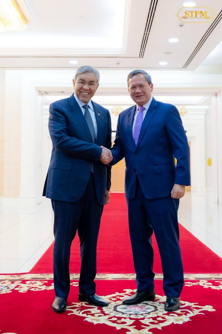 នាព្រឹក ថ្ងៃទី១៤ ខែតុលា ឆ្នាំ២០២៥, សម្តេចមហាបវរធិបតី ហ៊ុន ម៉ាណែត នាយករដ្ឋមន្ត្រីនៃព្រះរាជាណាចក្រកម្ពុជា បានអនុញ្ញាតឱ្យ ឯកឧត្តម Dato’ Sri Dr. Ahmad Zahid Hamidi ឧបនាយករដ្ឋមន្ត្រី និងជារដ្ឋមន្ត្រីក្រសួងអភិវឌ្ឍន៍ជនបទ និងតំបន់ នៃប្រទេសម៉ាឡេស៊ី ចូលជួបសម្ដែងការគួរសម និងពិភាក្សាការងារ នៅវិមានសន្ដិភាព។