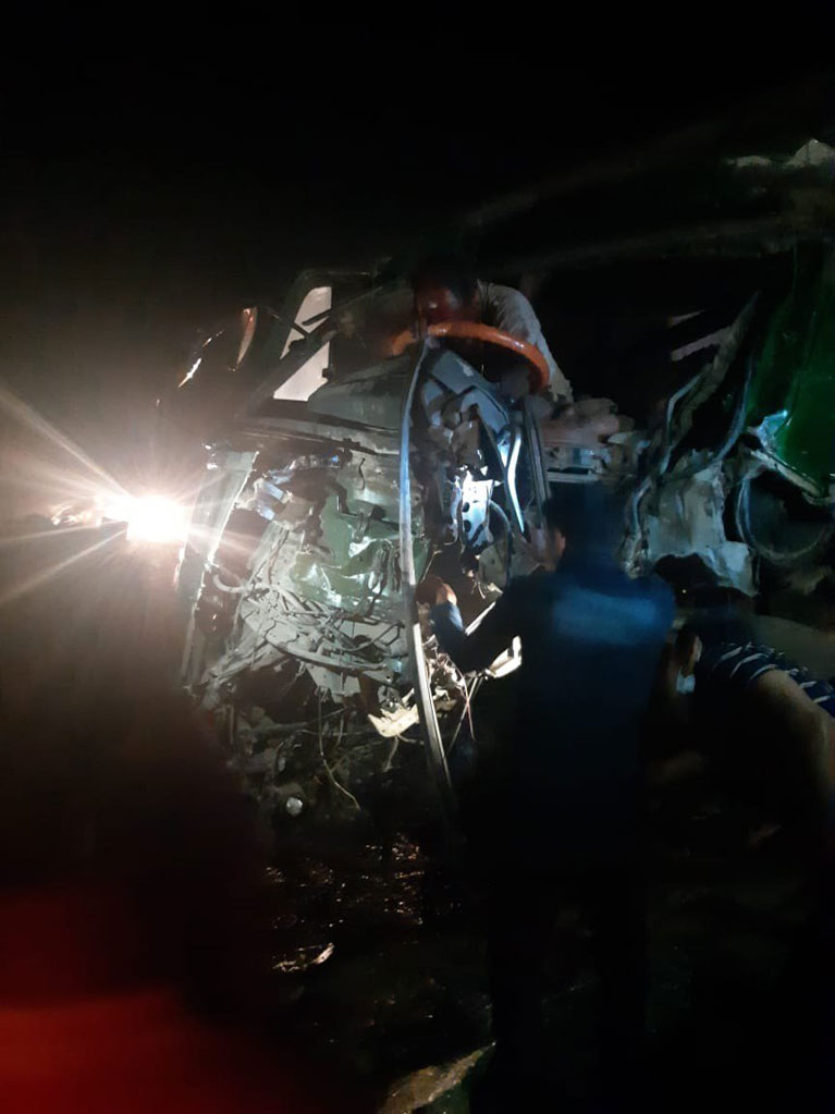 ថ្ងៃទី 22 ខែធ្នូ ឆ្នាំ2019លើកំណាត់ ផ្លូវជាតិលេខ 4 ចន្លោះគីឡូម៉ែត្រលេខ 39និង40 ត្រង់ចំណុចភូមិស្លា ឃុំវល្លិសរ ស្រុកសំរោងទង ខេត្តកំពង់ស្ពឺ មានរថយន្ត 1គ្រឿងម៉ាក FUSO ពណ៍លឿង ពាក់ស្លាកលេខភ្នំពេញ 3E-9261 មានសណ្តោង រ៉ឺម៉ក ពាក់ស្លាកលេខភ្នំពេញ 4A-1409 អ្នកបើកបរឈ្មោះ ចន វុន ភេទប្រុស អាយុ 25ឆ្នាំ រស់នៅភូមិត្រពាំងកក់ ឃុំទួលសាលា ស្រុកបសេដ្ឋ ខេត្តកំពង់ស្ពឺ បើកបរពីកើតទៅលិច ទៅដល់ចំណុចកើតហេតុខាងលើ បានរេចង្កូតទៅបុក រថយន្ត 1គ្រឿងម៉ាក NISSAN ពណ៍ខៀវ ពាក់ស្លាកលេខ ភ្នំពេញ 3B-9568 មានសណ្តោង រ៉ឺម៉កគ្មានស្លាកលេខ អ្នកបើកបរឈ្មោះ សុត ធឿន ភេទប្រុស អាយុ 31ឆ្នាំ រស់នៅភូមិចាក់កំបិត ឃុំវល្លិស ស្រុកសំរោងទង ខេត្តកំពង់ស្ពឺ ដែលកំពុងបើកបរបញ្ច្រាសទិសគ្នា បណ្តាលឲ្យគ្រោះថ្នាក់នាក់បើកបរទាំងសងខាង02នាក់ និងខូចសម្ភារដូចជា ខូចរយន្ត 2គ្រឿងកម្រិតធ្ងន់ធ្ងរ